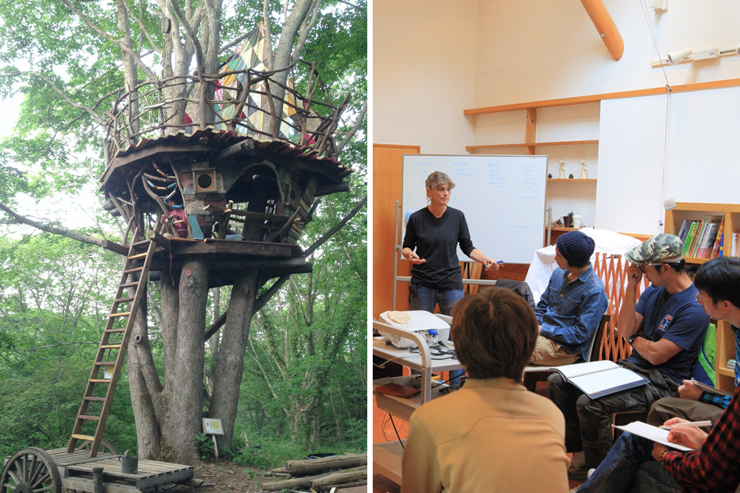 年初、タイニーハウスで暮らすDee WilliamsのTEDトークの動画を見て、すぐアメリカに会いに行く。戻ってきて、気仙沼と石巻でツリーハウスを製作(正確には地元の人に製作指導)している期間にもタイニーハウスへの興味が強くなり、秋にはDeeを招聘してタイニーハウスワークショップ@山中湖を開催。