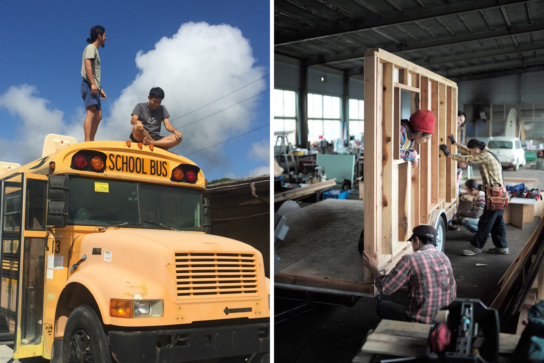 長く使われていなかった工場を借りて、今までの屋外作業から屋根の下でじっくりと作業ができるようになった。中高時代の仲間を中心にセルフビルドでクラフトビールのお店をつくったり、アメリカのスクールバスを改造して子供の遊び場をつくった。初めてシャーシをオリジナルで設計、製造。